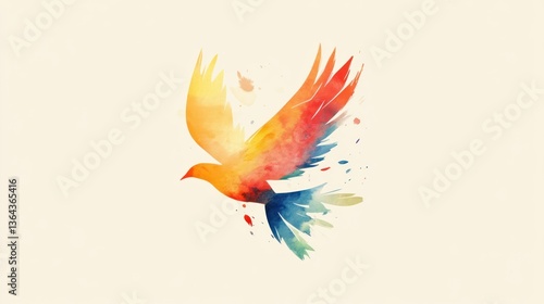 © sea sae, Obraz premium Colorful Watercolor Bird in Flight