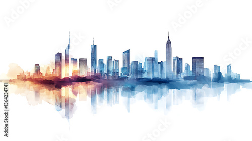© zhikun sun, Naklejka premium Colorful Watercolor Cityscape Skyline
