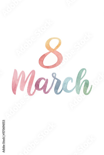 Fototapeta premium Colorful watercolor design, March 8 celebration, Women's Day theme, vibrant lettering, artistic style.