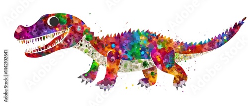 © Barek, Obraz premium Colorful Watercolor Dinosaur Illustration Happy Prehistoric Creature