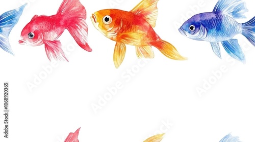 Fototapeta premium Colorful watercolor fish seamless pattern on a white background ideal for...