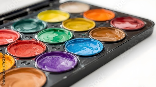 Naklejka premium Colorful watercolor paint palette with many vibrant hues