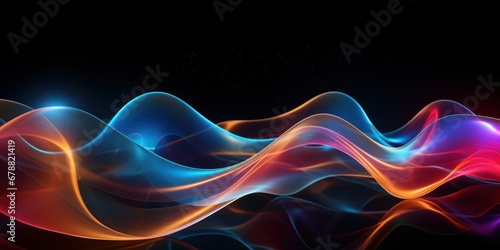 © lublubachka, Naklejka premium Colorful Wave Pattern Illuminated with Lights on a Black Canvas