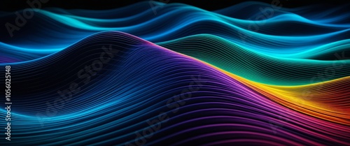 Fototapeta premium Colorful waves of light: vibrant abstract motion in futuristic blue and...