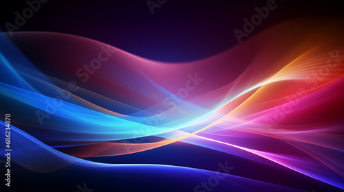 © Domingo, Fototapeta premium Colorful waves on dark background. Bright and vibrant gradient design of blue, pink, orange, purple, red, and yellow neon. Smooth and fluid motion of curves and lines