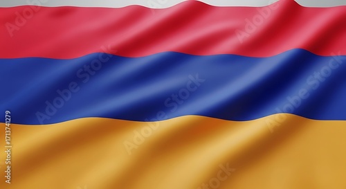 © Abdul, Naklejka premium Colorful Wavy Flag with Red Blue and Gold Stripes in Soft Fabric Texture