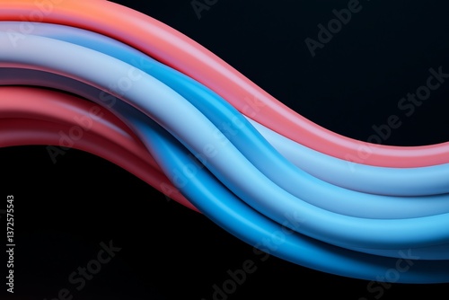 © Nongkran, Fototapeta premium Colorful Wavy Lines in Soft Shades of Pink and Blue on a Dark Background
