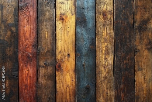 © Semi, Naklejka premium Colorful Weathered Wooden Wall Texture