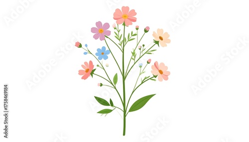 © aidliskndr, Naklejka premium Colorful Wildflower Bouquet on White Background