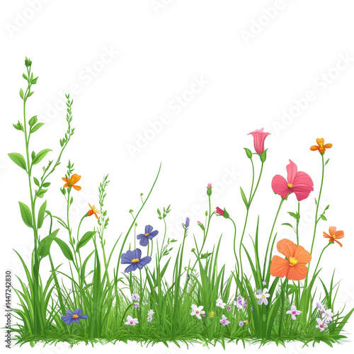 Fototapeta premium Colorful wildflowers and lush grass create a vibrant natural landscape in springtime