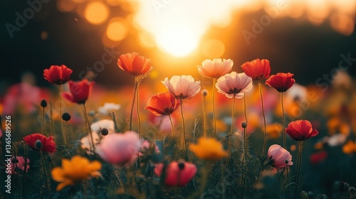 © Lemdah, Obraz premium Colorful wildflowers bloom in a field at sunset