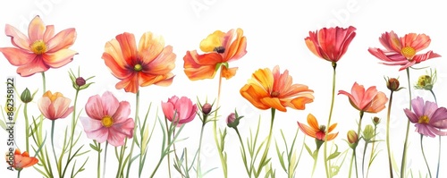 © iVGraphic, Fototapeta premium Colorful wildflowers illustration on white background