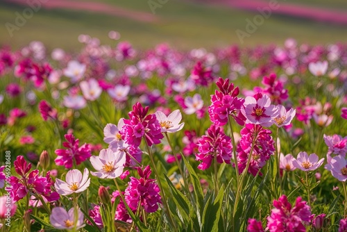 © Michael, Fototapeta premium Colorful Wildflowers in a Bright Sunlit Spring Meadow Scene