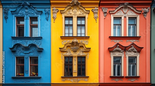 © Umri, Naklejka premium Colorful window collage with architectural pediments