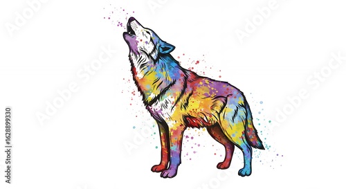Obraz premium Colorful wolf howling illustration
