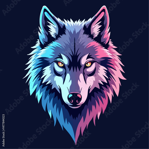 Naklejka premium Colorful wolf illustration with gradient fur on dark background
