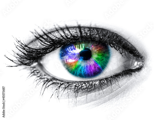© irishmaster, Naklejka premium Colorful woman eye macro shot