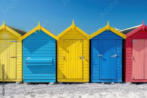 © Ольга Лукьяненко, Naklejka premium Colorful wooden beach huts by the sea