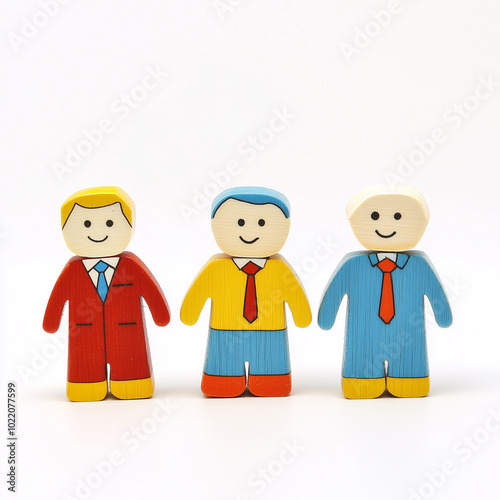 © mertingen, Fototapeta premium Colorful wooden businessman figurines isolated on white background