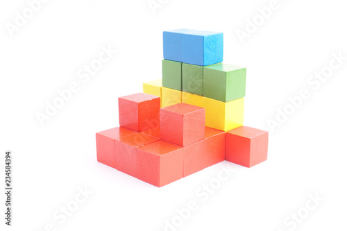 © Mohd Khairil, Fototapeta premium Colorful wooden cube isolated on white background.