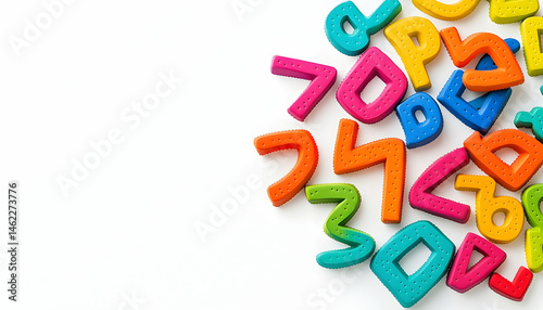 © Realis, Naklejka premium Colorful wooden letters and numbers