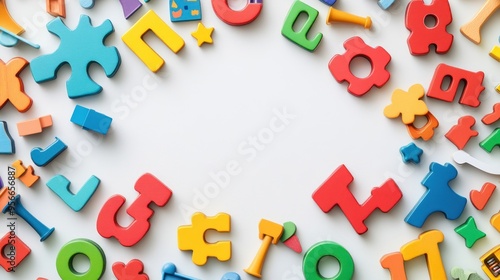 Naklejka premium Colorful Wooden Letters and Shapes on White Background