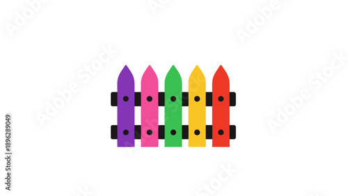 Obraz premium Colorful Wooden Picket Fence Section Vector Illustration