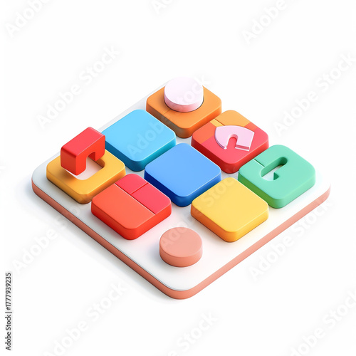 Obraz premium Colorful wooden shape sorter toy isolated on white background, designed to...