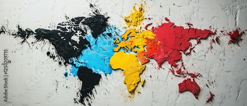 © fourtakig, Obraz premium Colorful World Map Abstract Art with Textured Three-Dimensional Elements