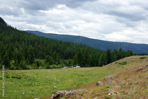 Obraz premium Colorful year landscape with mountain and wood