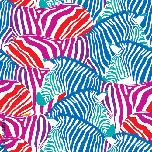 © wowow, Fototapeta premium Colorful zebra seamless pattern. Savannah Animal ornament. Wild animal texture. Striped black and white. design trendy fabric texture, vector illustration.