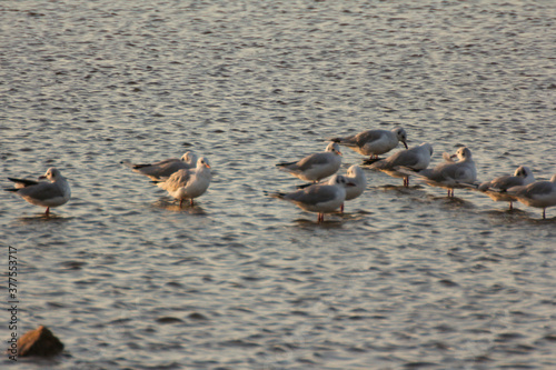 Fototapeta premium Colorfull flamingos in the sunset, Puglia Italy