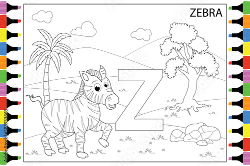 © Curut Design Store, Fototapeta premium coloring animal for kids with alphabet letters