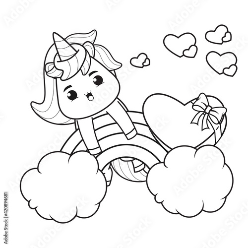 Obraz premium Coloring Book Cute Unicorn for valentine's day