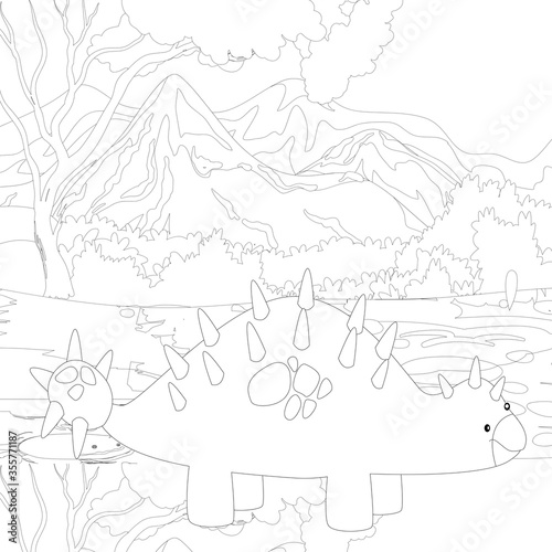 Fototapeta premium Coloring book for children with a dinosaur in cartoon style, tyrannosaurus