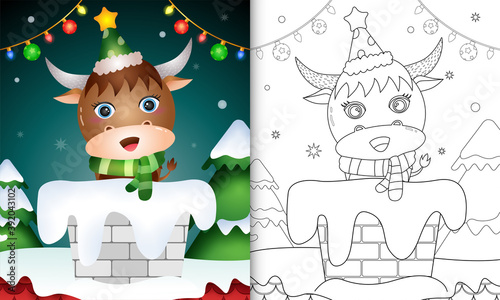 Naklejka premium coloring book for kids with a cute buffalo using hat and scarf in chimney
