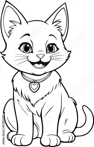 Obraz premium Coloring book page on a white background with a cat smile. line art drawing