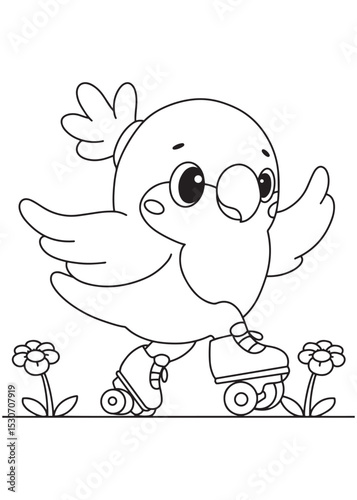Obraz premium Coloring book parrot wearing cute glasses and roller skates, happily gliding...