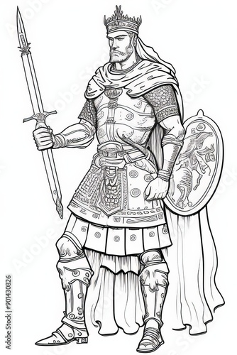 © Panomedia, Fototapeta premium coloring book ukranian warrior, full body, hand drown line art