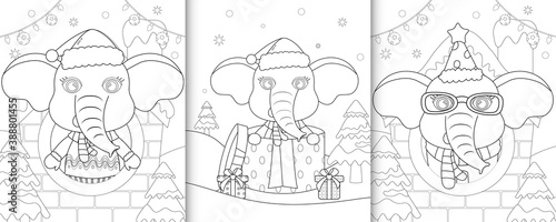 © riko_design, Fototapeta premium coloring book with cute elephant christmas characters
