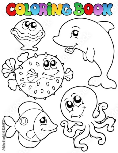 © Klara Viskova, Obraz premium Coloring book with sea animals 1