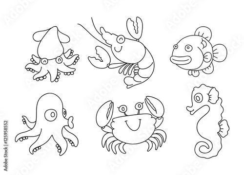 Naklejka premium coloring cartoon sea animal, vector