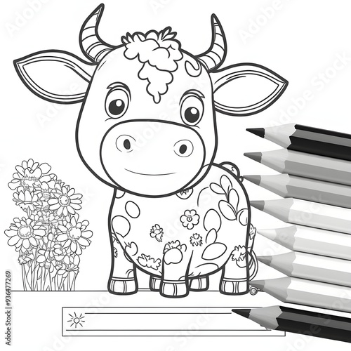 © Antonella, Obraz premium COLORING DRAWING OF A COW ON THE FARM 2