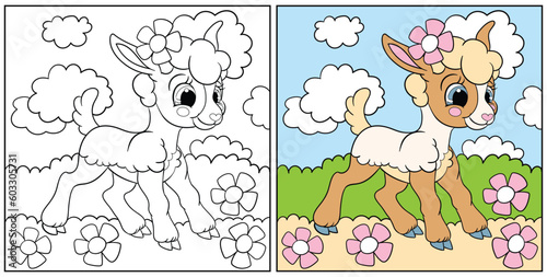 © alinart, Fototapeta premium Coloring for kids cute lamb vector illustration