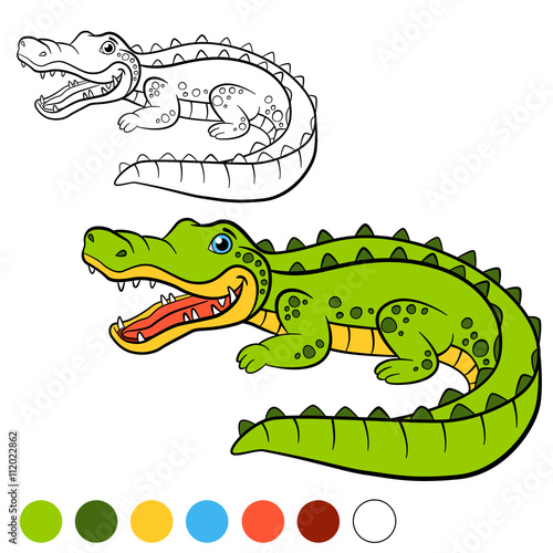 Fototapeta premium Coloring page. Color me: alligator. Little cute alligator.