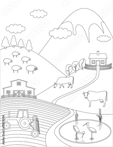 © vectoramac, Obraz premium Coloring page Countryside.