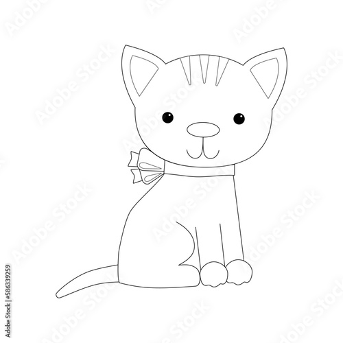 © Marina, Obraz premium Coloring page. Cute kitten with a bow.