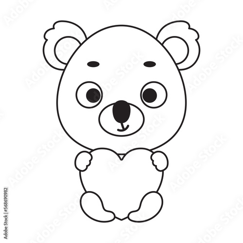 Fototapeta premium Coloring page cute little koala holds heart. Coloring book for kids. Educational activity for preschool years kids and toddlers with cute animal. Vector stock illustration
