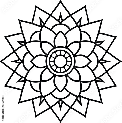 © Shahina, Naklejka premium Coloring page line art flower mandala illustration