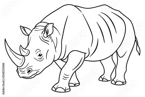 © mst, Fototapeta premium coloring page line art the rhinoceros black vector